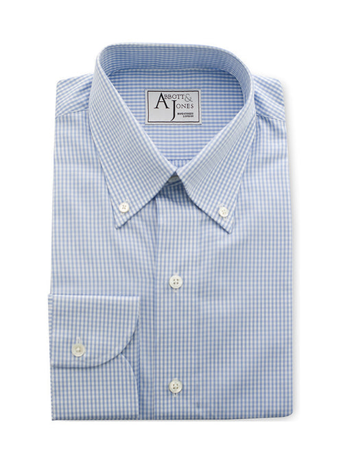 The ever versatile Gingham. Our small blue and white gingham is the ideal light blue shirt that looks as great on the weekend as it does in the office.